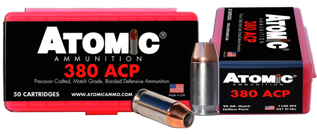 Atomic Ammunition’s 380 ACP ammunition is designed to hit hard, expand to 150 percent of its original diameter even if fired through heavy clothing and still penetrate 12 inches or more of ballistic medium and all when fired from a small, concealed carry sized pistol. It is assembled to exact specifications with commercial grade machinery and is designed to deliver the accuracy that precision shooters demand.