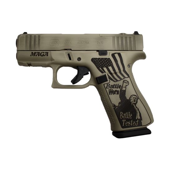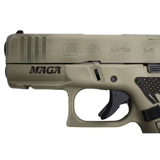 Glock 43X MOS 9MM 3.41″ BBL Pistol 10RD, Distressed Verde Trump “Fight”