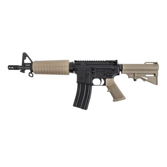 Barrel: 10.5″ Chrome Moly steel Nitride coated barrel. Chambered in 5.56 NATO, with a 1/7 twist, M4 barrel extension, and a carbine-length gas system. The barrel is finished off with a classic handguard, .750 F-Marked gas sight base, and A2 flash hider.