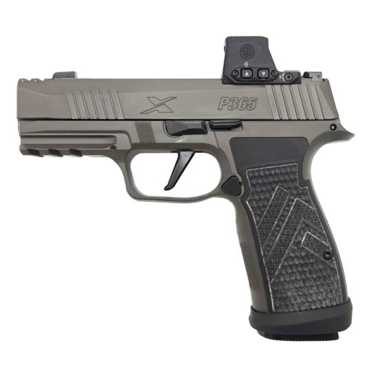 Like all pistols in the Legion family, the P365-AXG Legion Pistol embraces what its owners stand for and expect, quality, innovation and performance. This model features an alloy Macro grip frame with G10 Chevron grip panels, optics cut integral compensated slide design, extended magwell, XRAY3 Day/Night Sights and Romeo X Compact Optic, and Legion Cerakote Gray Finish. This is not only the first P365 LEGION, it is the perfection of a carry pistol, period.