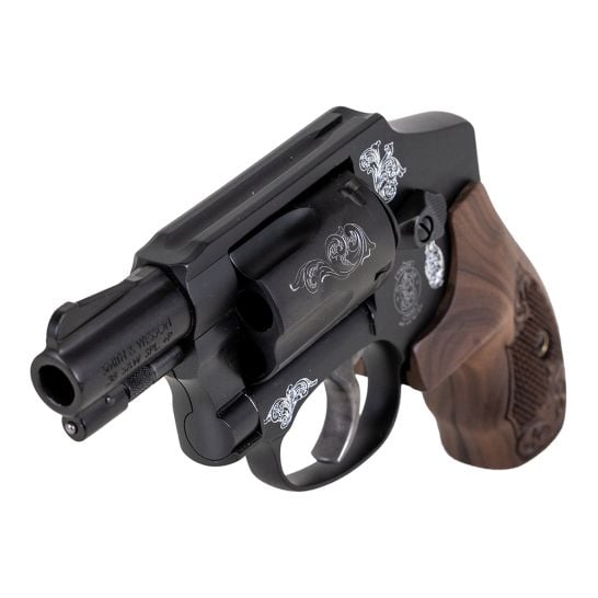 Smith & Wesson J-Frame revolvers have had your back since 1950. These small revolvers were designed to fire a full power round and are as simple and easy to use as they are reliable. Available in various calibers and with three diverse hammer designs, it is no surprise that the Smith & Wesson J-Frame has become the most popular, small-frame, defense revolver on the market. The Model 442 is the latest innovation of the Model 42 Centennial Airweight, a lightweight aluminum alloy revolver with a fully concealed hammer. Beautifully enhanced with diamond-tipped machine tool scroll engravings on the frame and cylinder, the Model 442 integrates the time-tested features of the original with modern advancements.