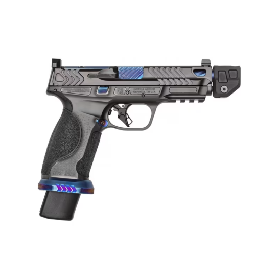 Introducing the M&P9 METAL – Spec Series V, the pinnacle of performance-driven design. This fifth-generation Spec Series pistol is a comprehensive package, delivering three high-capacity 23-round magazines, a custom Spec Series knife, and a commemorative challenge coin. Engineered for superior handling and accuracy, this pistol boasts a robust steel frame with aggressive texturing, a Strike Industries™ compensator to minimize muzzle rise, a steel magwell for rapid reloads, and a durable steel optic cover plate. Take your shooting to the next level with the enhanced ergonomics and premium features of the M&P9 METAL – Spec Series V.